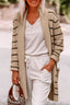Black Stripe Shawl Neckline Open Cardigan with Pockets