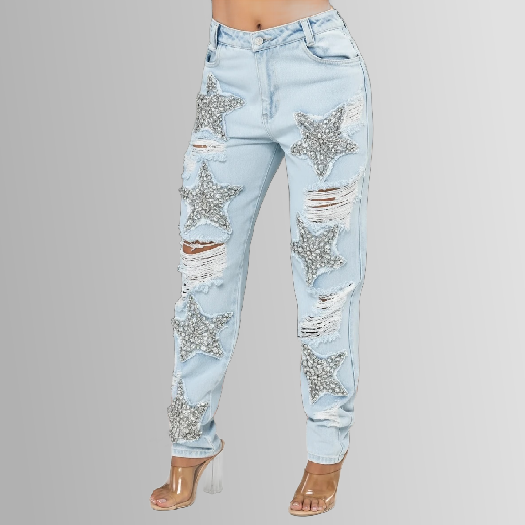These star-studded boyfriend jeans bring that fearless SAS vibe—rhinestone shimmer, distressed detailing, and that perfect loose fit that says effortless confidence. Made from a premium cotton blend, they’re built to turn heads while keeping comfort first. Pair them with a cropped top or a fitted tee for that casual-but-badass look that never misses.