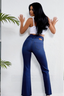 Dusk Blue Crossed-Waist Flare Jeans – Stretch Fit, Sculpted Sass