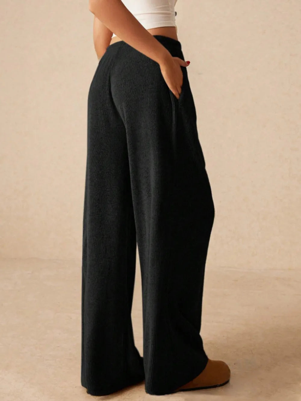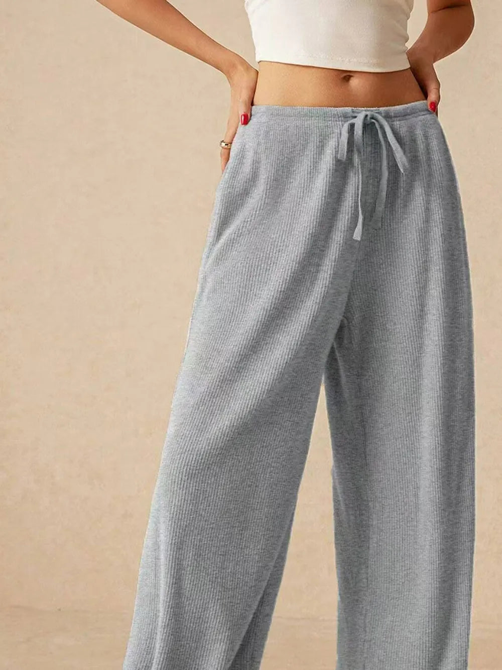 Ribbed Drawstring Wide-Leg Pants