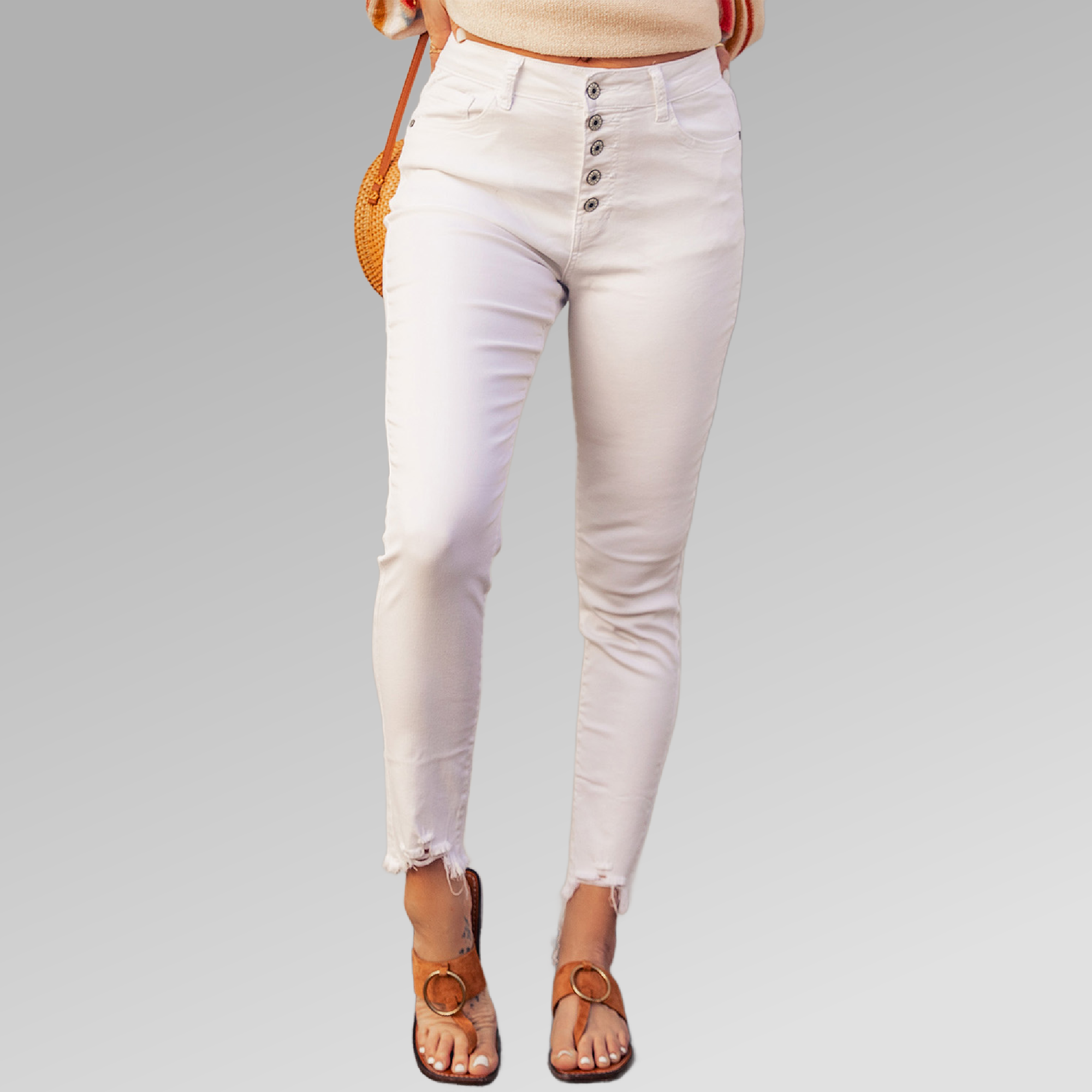 White High-Waist Cropped Jeans – Frayed, Fitted & Full Sass
