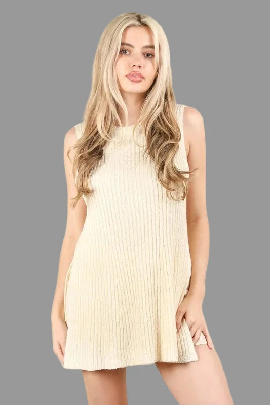 Slit Ribbed Knit Lounge Set – Top & Shorts