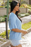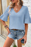 Peach Blossom Ruffled Half Sleeve V Neck Textured Top